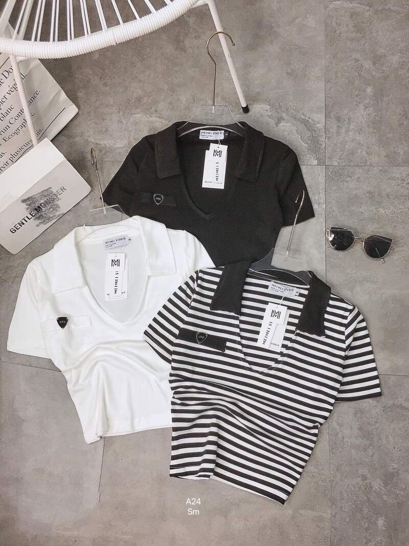 Áo cổ bẻ khoét cộc tay tag ngực free ship