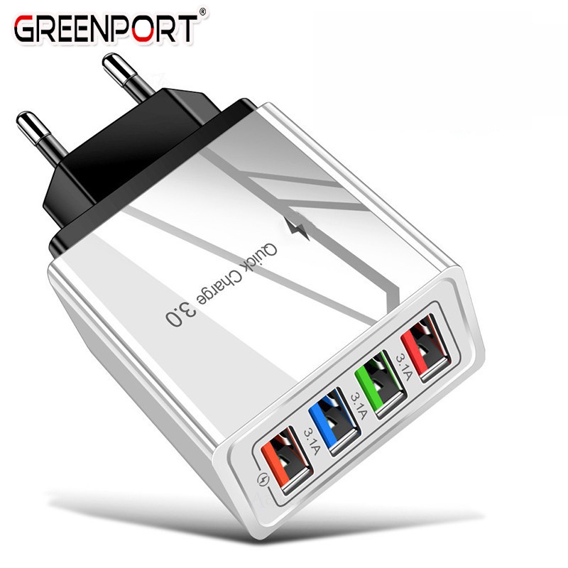 Greenport Đầu sạc 4 cổng USB hỗ trợ sạc nhanh Qc 3.0 33w free ship