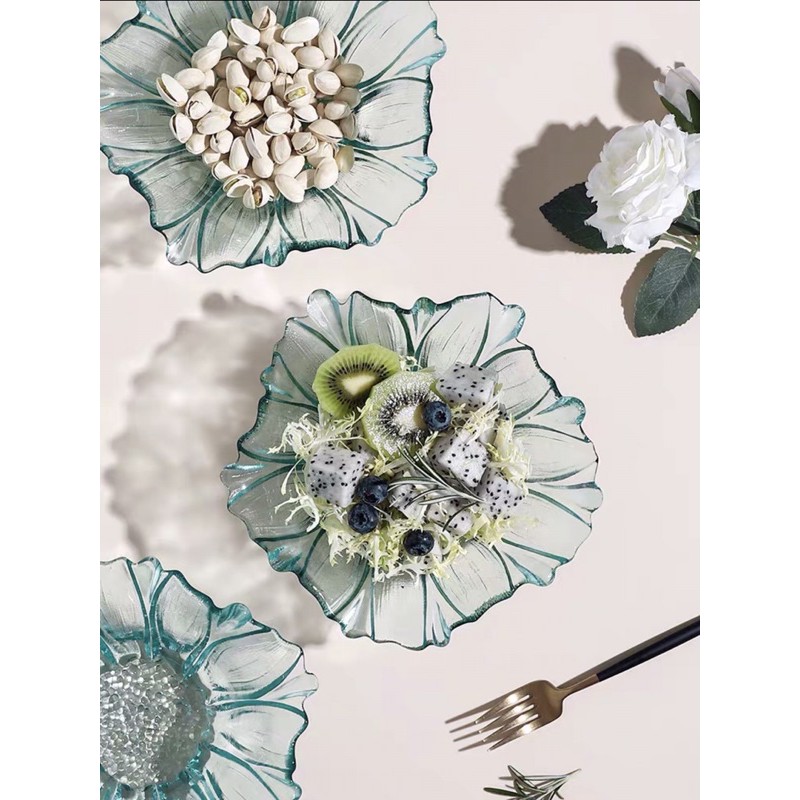 Set đĩa thuỷ tinh đựng hoa quả free ship