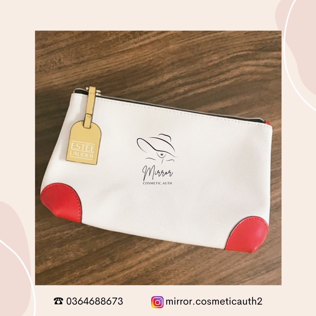Túi mỹ phẩm Estee Lauder hồng tím khóa vải nơ hoa